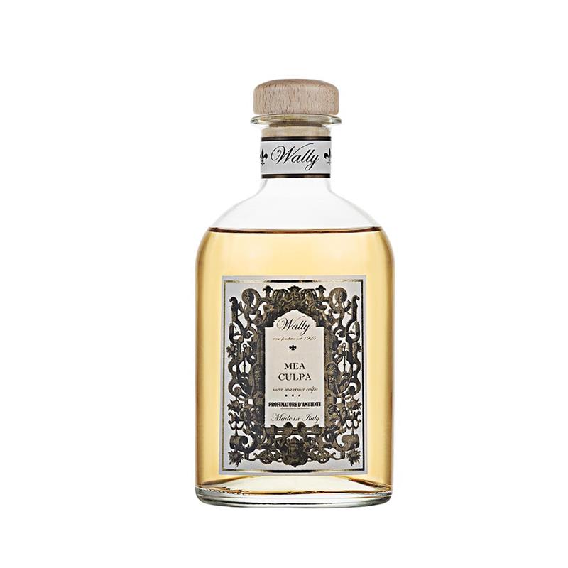 Questa composizione odorosa, dalla nota dominante di incenso, è frutto di una lunga ricerca. Abbiamo creato una nota meditativa a cavallo tra sacro e profano dove ognuno possa collocare la propria dimensione esistenziale. Da collocare negli ambienti di maggiore relax. MEA CULPA, la Fragranza d'Ambiente presentata da Wally 1925. Proviamo a chiudere gli occhi, ascoltiamo in silenzio le emozioni intense che le ricche note di questa fragranza ci riportano alla memoria: alcune vissute altre solo immaginate ma sono lì, dentro di noi, come un dejavù pronto a colpirci il cuore. Le abbiamo sognate quelle dune arroventate, mosse dal vento, del deserto arabico che l'Elèmi d'Arabia ci riporta? O sono state vissute in una vita precedente? E quell'effluvio leggero ma così intenso d'Incenso di Somalia che sembra avvolgerci dove e quando lo abbiamo catturato? Legni Preziosi, Patchouly d'Indonesia, Legno di Cedro Bianco, Vetyver d'Haiti uno dentro l'altro, eccoli raccolti nello scrigno prezioso del cuore della fragranza e nel fondo, persistenti, arrivano il Muschio Bianco, l'Ambra, la Vaniglia del Madagascar a compensare sapientemente la sacralità della Testa. MEA CULPA è una Fragranza d'Ambiente importante, esclusiva, da meditazione che non potrete evitare di amare da subito, dal primo test olfattivo. Vi renderete conto che sarete portati a collocarla negli ambienti di maggiore relax, per esempio dove è naturale leggere o ascoltare musica. Non fatevene una colpa se ne sarete conquistati per sempre. La Fragranza d'Ambiente MEA CULPA è proposta nelle bottiglie in vetro artigianali da 250 ml., 500 ml. e nella preziosa magnum da 3 Lt. con i bastoncini in midollino naturale per diffonderne i profumi. Ed anche nella versione spray da 100 ml