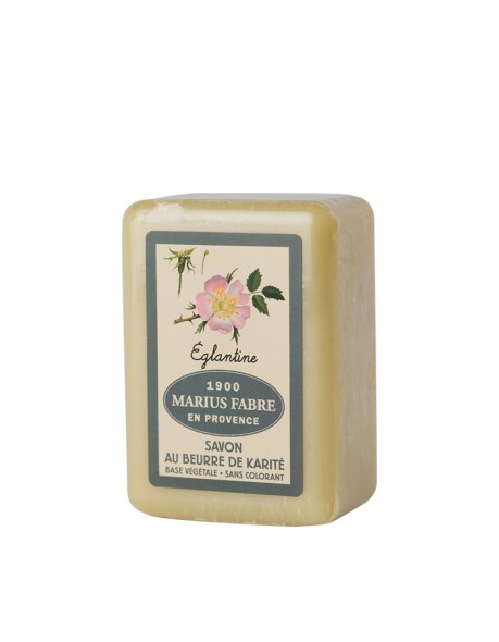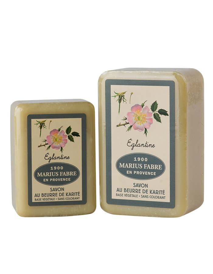 Delicatamente profumato con Eglantine, questo sapone arricchito con burro di karitè pulirà delicatamente la pelle e farà della doccia un piacevole momento di benessere.