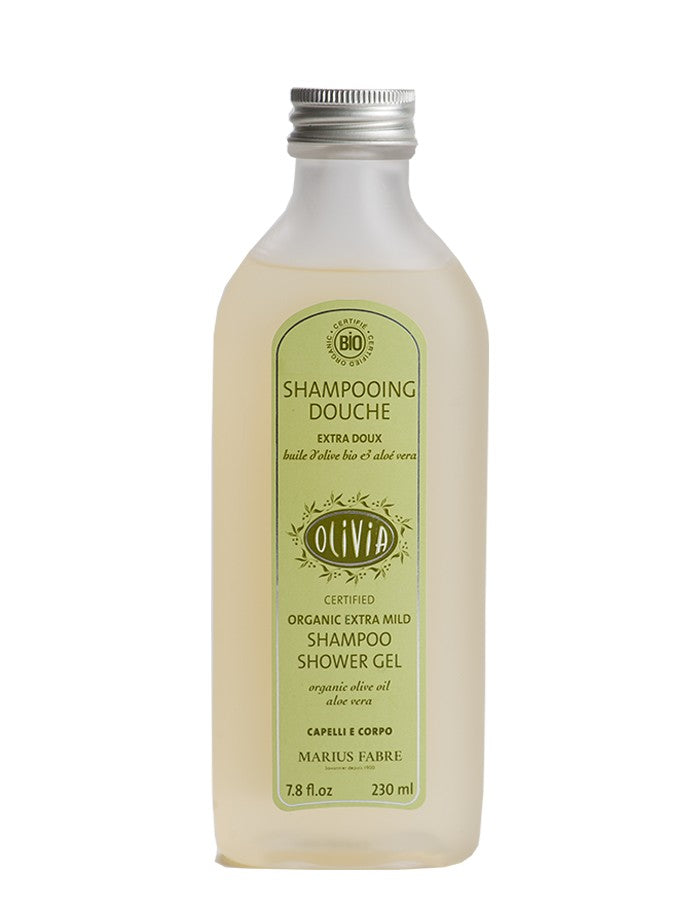 Shampoo doccia Extra Soft OLIVIA contiene olio d'oliva biologico e Aloe Vera.
